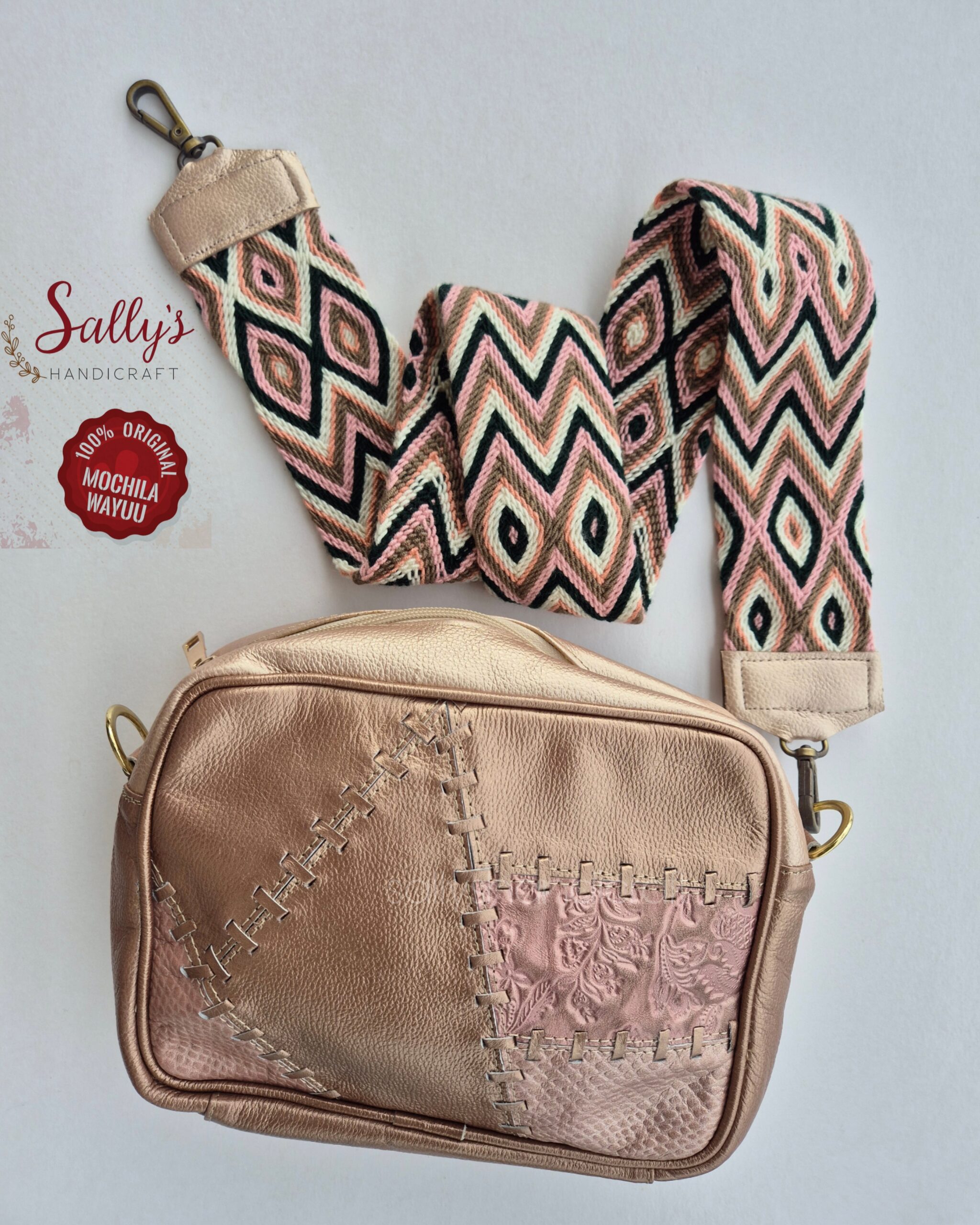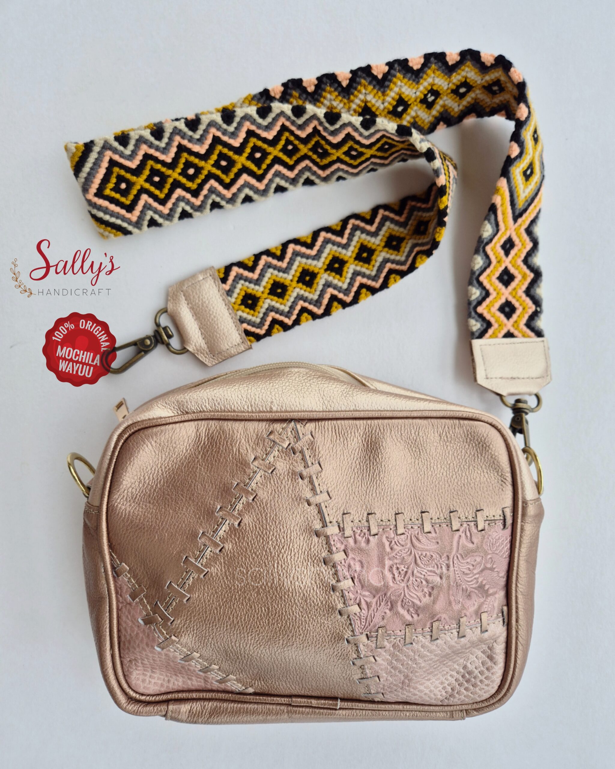 100% Genuine leather come with 1 unique Wayuu removable strap.