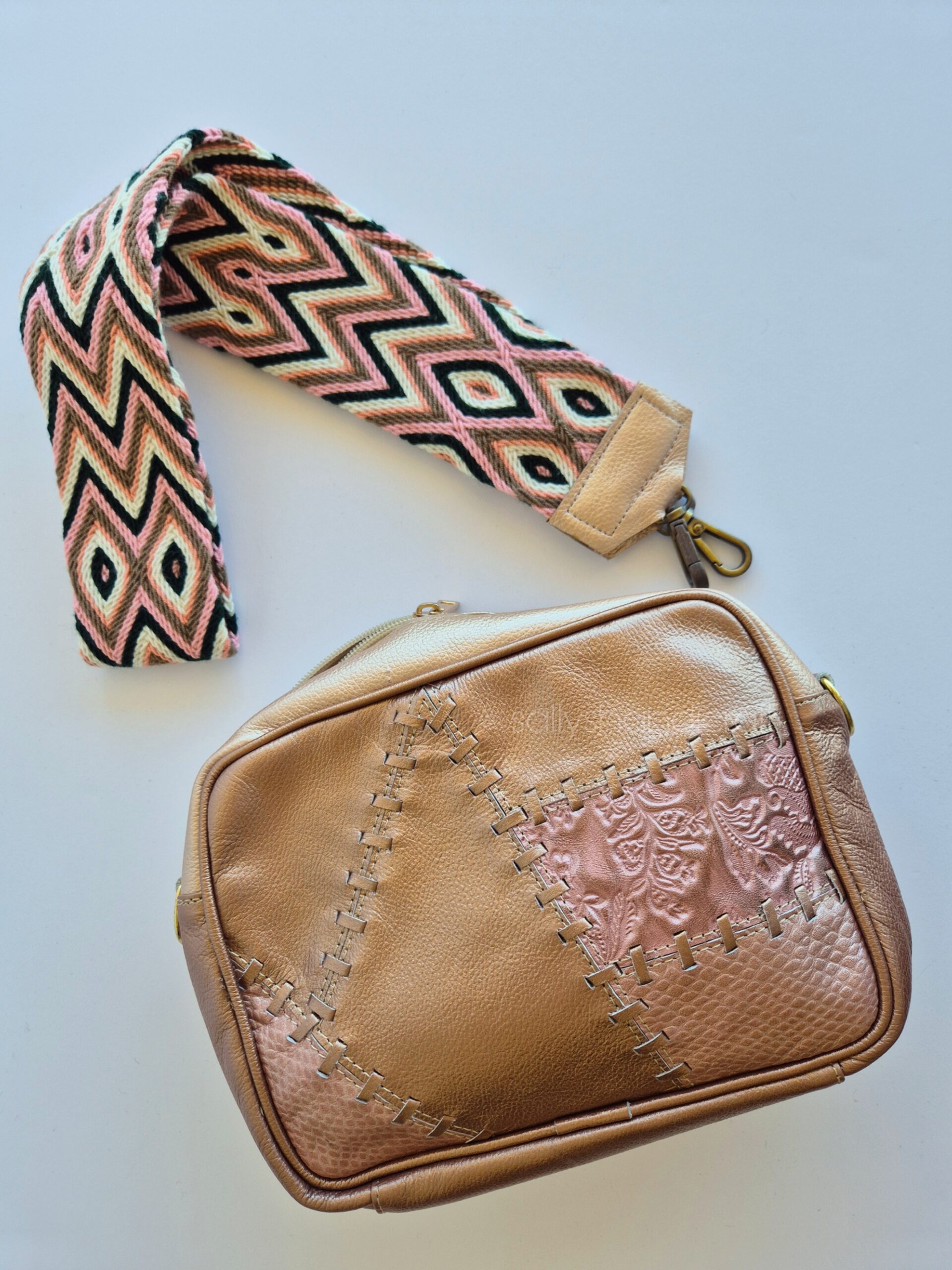 Strap: Wayuu strap with leather trim with removable strap